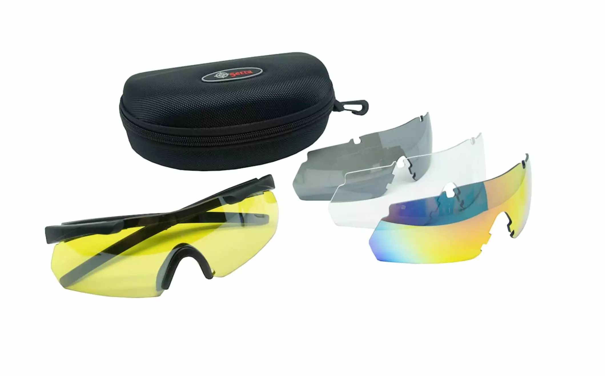 Ampujanlasit neljällä vaihdettavalla linssillä. Soveltuvat hyvin ampumiseen, metsästykseen, työhön tai aurinkolaseiksi. Joustavat, pyöreät TPU-sangat, jotka tarjoavat maksimaalisen näkökentän. Pakkaus sisältää käytännöllisen kotelon vetoketjulla, puhdistusliinan ja säilytyspussin. Pehmeät nenätyynyt maksimoivat istuvuuden.