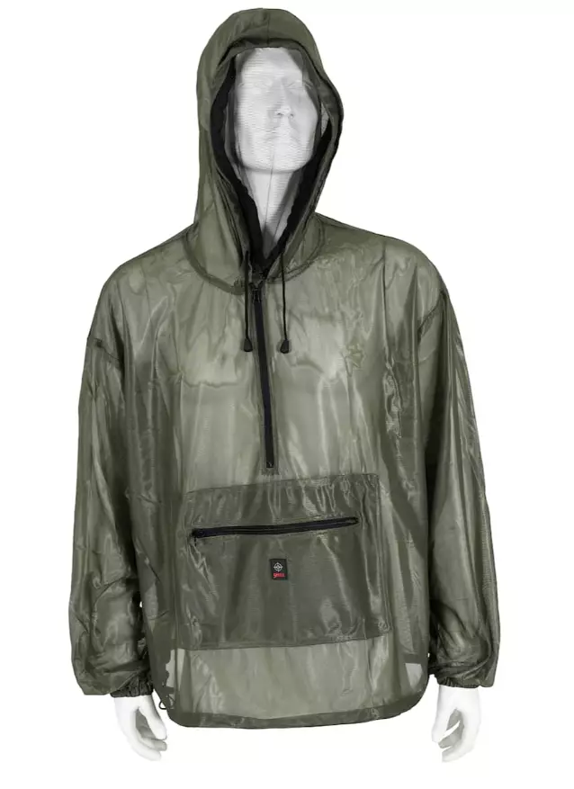 Hyttysiltä ja mäkäräisiltä suojaava anorakki.