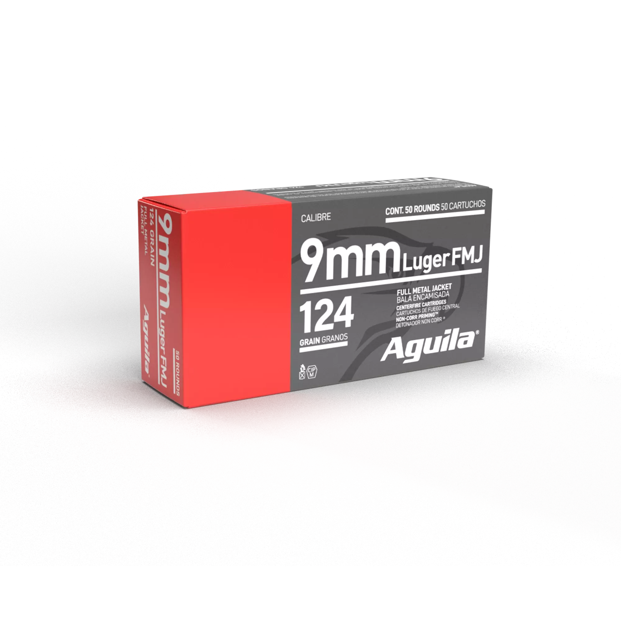 Aguila 9mm Luger FMJ 8g * Rasiassa 50 kpl patruunoita * Kaliiperi: 9mm Luger * Luoti: 8g (124gr) FMJ * Lähtönopeus V0: 339 m/s