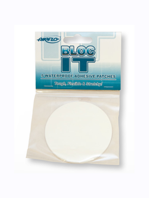 Airflo Bloc-It kahluuhousun paikka 5kpl Pakkauksessa 5 kpl vedenpitäviä liimapintaisia paikkoja kahluuhousuihin, telttoihin, ilmatäytteisiin patjoihin tms.