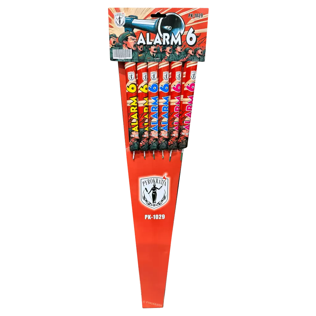 Alarm 6 rakettipakkaus 6 kpl Nämä huuto(nauru) raketit on varustettu kolmiosaisella nousulla ja tällä kertaa löytyy kolome eri efektiä. Värikoodi: keltainen, sininen ja punainen. * Pyromassa:... Lue lisää