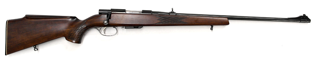 Siisti kivääri kolmen patruunan irtolippaalla. Aseessa 11mm kisko optiikkaa varten sekä avotähtäimet.