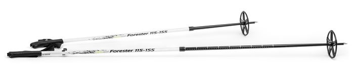 Leveällä sommalla sekä kumisilla kädensijoilla varustetut alumiiniset teleskooppisauvat. Pituus säädettävissä välille 115-155cm.