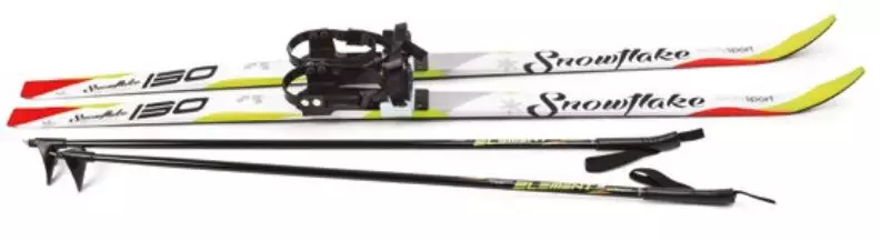 Et tarvitse erillisiä monoja vaan voidaan hihtää normaaleilla talvikengillä. Snowflake lasten ensisukset ovat nopeat ja kätevät kiinnittää. Sauvojen pituus 130cm suksipaketissa on 100cm.