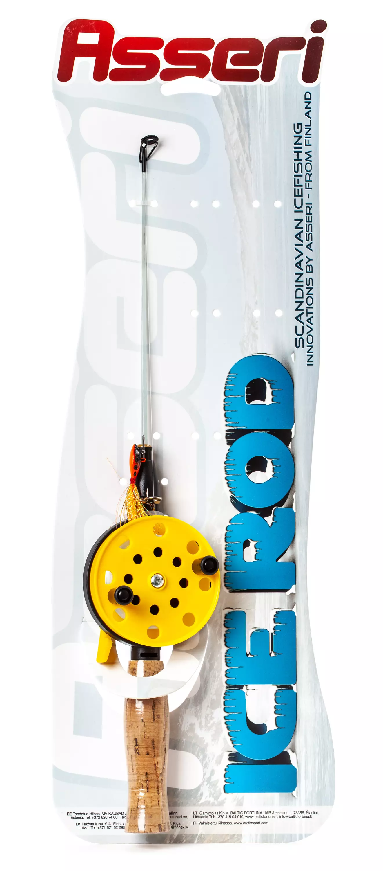 Asseri Kianta Combo -pilkkisetti Pilkkisetti sisältää korkkikahvaisen Asseri Kianta -pilkkivavan 75mm puolalla, valmiiksi puolatun monofiili-siiman sekä tasapainopilkin.
