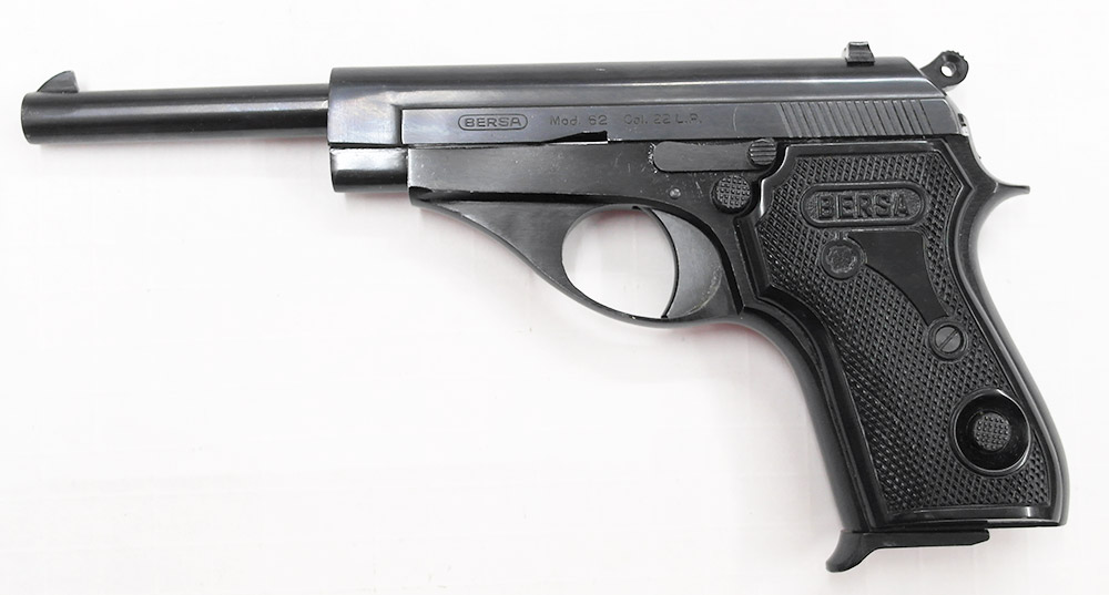 Bersa mod. 62 .22LR -pienoispistooli Siisti pienoispistooli yhdellä lippaalla. * Kaliiperi: .22LR * Toimintatapa: 3 - itselataava kertatuli