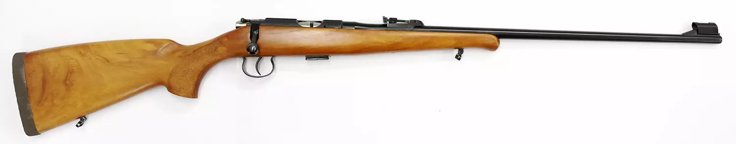 Siisti tsekkiläinen pienoiskivääri viiden patruunan irtolippaalla ja puutukilla.