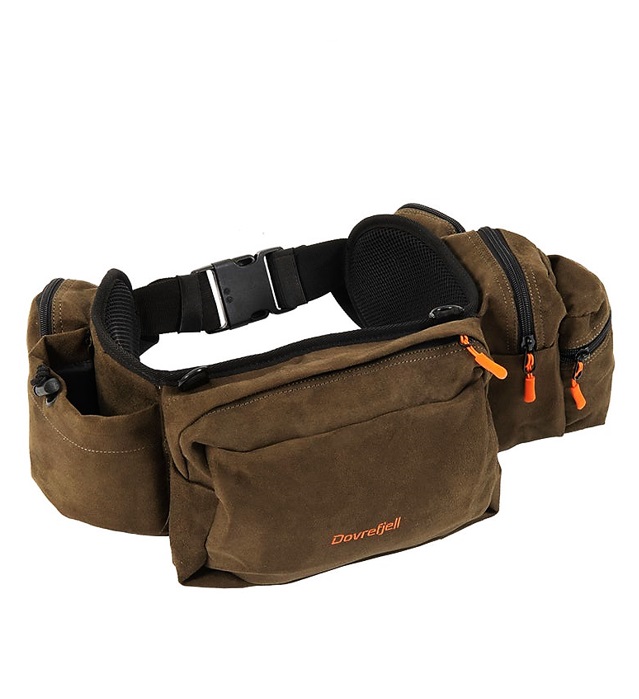 Käytännöllinen Dovrefjell Forest vyölaukku päiväretkeilyyn, metsästykseen ym.. Dovrefjell Forest vyölaukussa on yhteensä neljä pientä taskua ja yksi iso – kaikki suljetaan vetoketjulla. Lisäksi siinä on myös vetonauhallinen tasku ylhäällä vesipulloa varten. Säädettävä lantiovyö edessä.