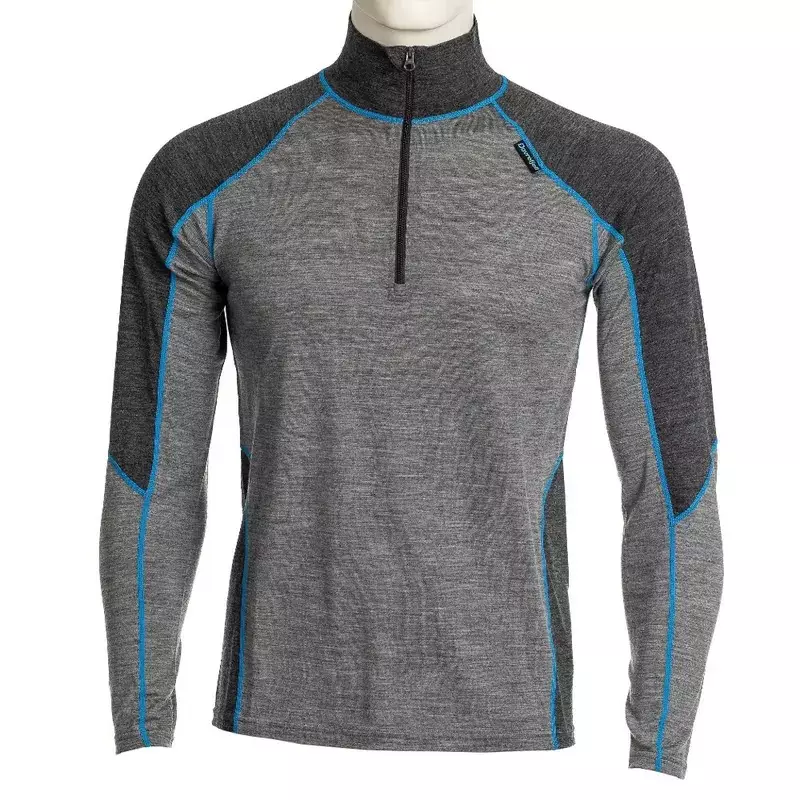 Dovrefjell merinovilla-alusasujen väri on charcoal/grey , turkoosin sinisillä ompelutereillä tehostettuna.