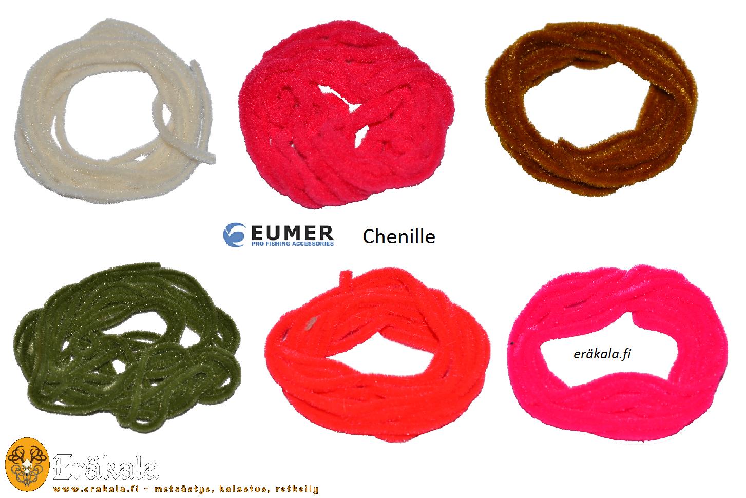 Chenilleä käytetään perhon rungon tekemiseen. Siitä voi tehdä perhoon myös keinokuitu häkilän.