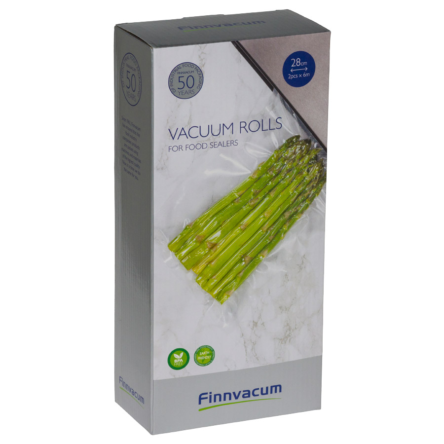 Finnvacum Uritettu vakuumiletku 28cm x 6m, 2 rullaa Säilyttää elintarvikkeiden tuoreuden jopa viisi kertaa pidempään kuin perinteiset säilytysmenetelmät. Suojaa elintarvikkeita... Lue lisää