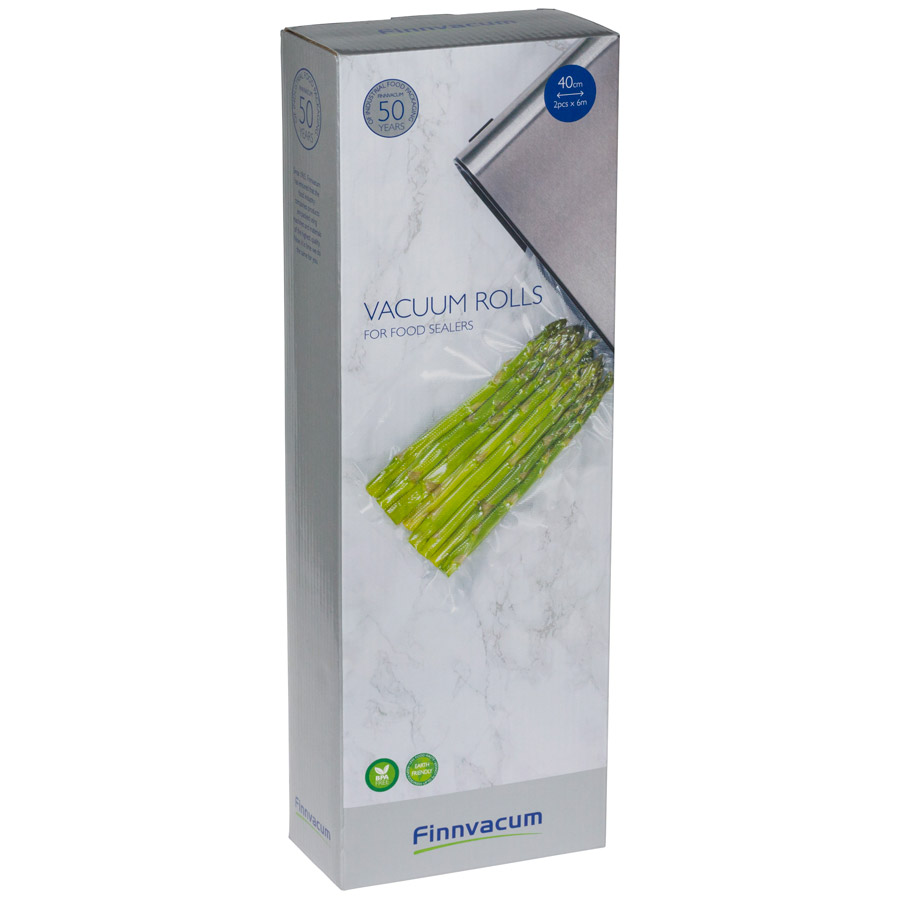 Finnvacum Uritettu vakuumiletku 40cm x 6m, 2 rullaa Säilyttää elintarvikkeiden tuoreuden jopa viisi kertaa pidempään kuin perinteiset säilytysmenetelmät. Suojaa elintarvikkeita... Lue lisää