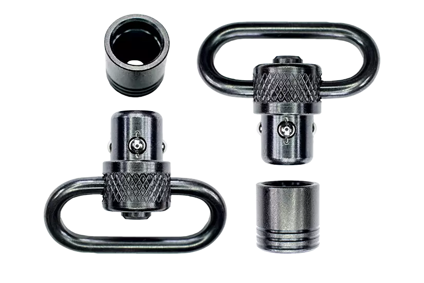 Grovtec Push Button QD hihnalenkit kiinnikkeillä Paketissa 2 kpl QD hihnalenkkejä sekä kiinnikekupit. Väri musta. Valmistettu USA:ssa.