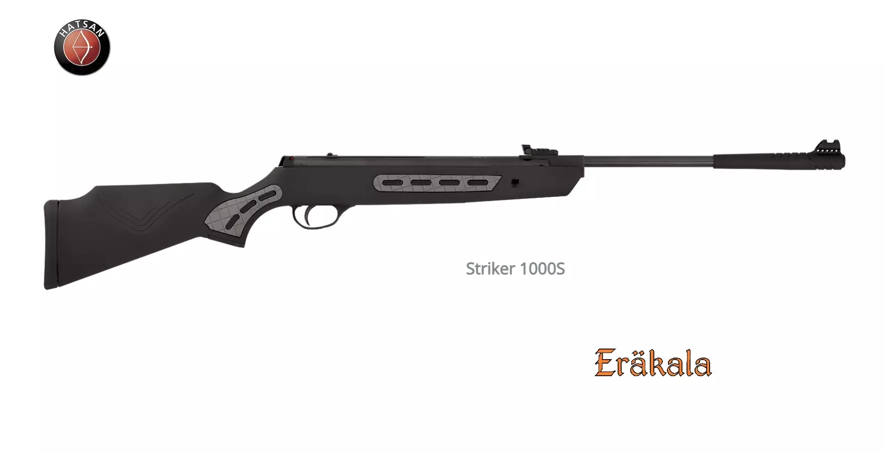 Hatsan 1000S Striker 5,5 mm ilmakivääri Hatsan 1000S Striker ilmakivääri tyylikkäällä synteettisellä tukilla, jossa molemminpuolinen Montecarlo-poskituki. Perässä kuminen perälevy... Lue lisää