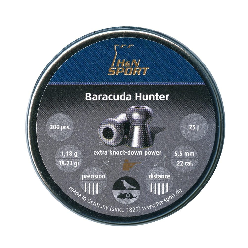 H&N Baracuda Hunter 5,50mm 1,18g ilmakiväärin luoti Saksalaisen H&N Sport valmistajan laadukkaat reikäpäiset luodit on loistava valinta etenkin pidemmille etäisyyksille. 200kpl, 5,5mm, 1,18g... Lue lisää