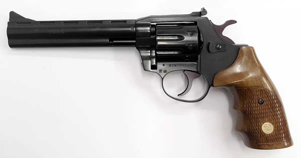 Holek 261 6" .22LR pienoisrevolveri Todella siisti kaksitoiminen pienoisrevolveri yhdeksän patruunan rullalla ja 6"(150mm) piipulla. Aseessa puiset kahvalevyt. Mukana muovilaukku. * Kaliiperi: .22LR... Lue lisää
