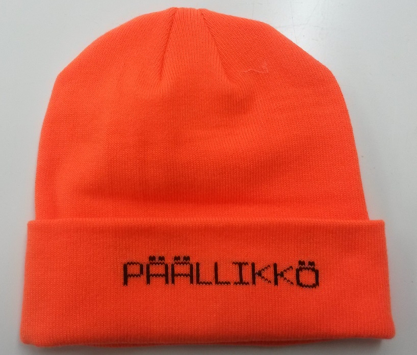 Huomiopipo tekstillä, oranssi Väri: Huomio-oranssi Lämmin 2x rakenne Materiaali venyvää Spandexia Lämmittävä lahjatuote metsienmiehille ja -naisille!