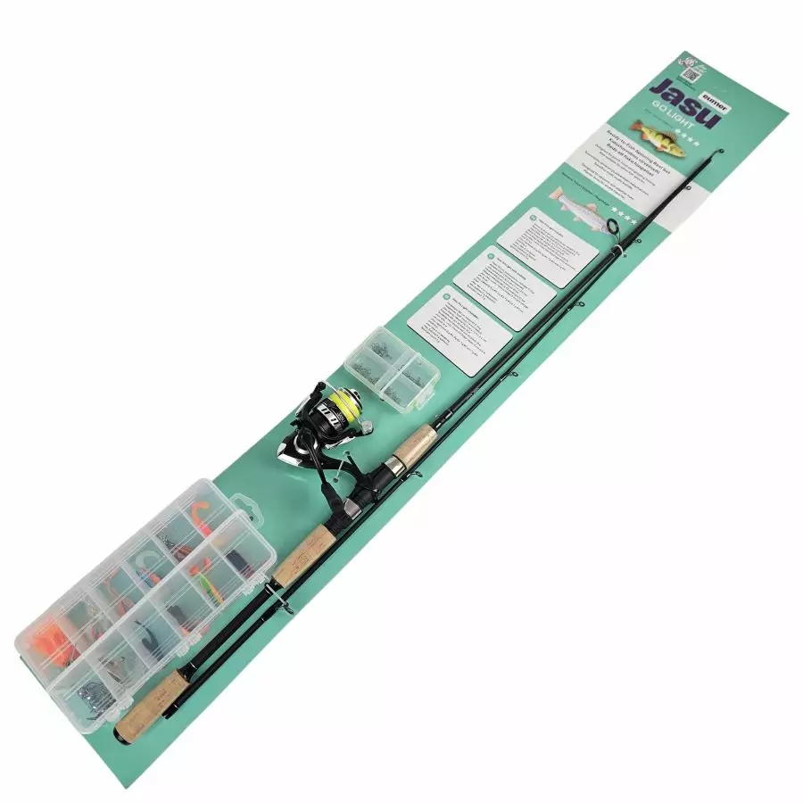 Jasu Go Light on Eumerin kalastusoppaiden suunnittelema setti ahvenen ja jalokalan pyyntiin ja se on todellinen ready to fish -paketti. Se sisältää avokelasetin, jossa on vapa, kela ja kelalle valmiiksi puolattu kestävä kuitusiima. Mukana tulee myös kaloille maistuvat vieheet ja jigit. Osa vieheistä on Eumerin omaa tuotantoa ja valmistettu Merikarvialla/Suomessa! Vieheet ja pikalukot pakkasimme sinulle valmiiksi näppäriin rasioihin, missä ne pysyvät jatkossakin tallessa ja hyvässä järjestyksessä. Setin esittelyvideo löytyy YouTubesta. Videolla on tarkempaa tietoa setin sisällöstä, käyttöönotosta ja kalastustekniikoista.