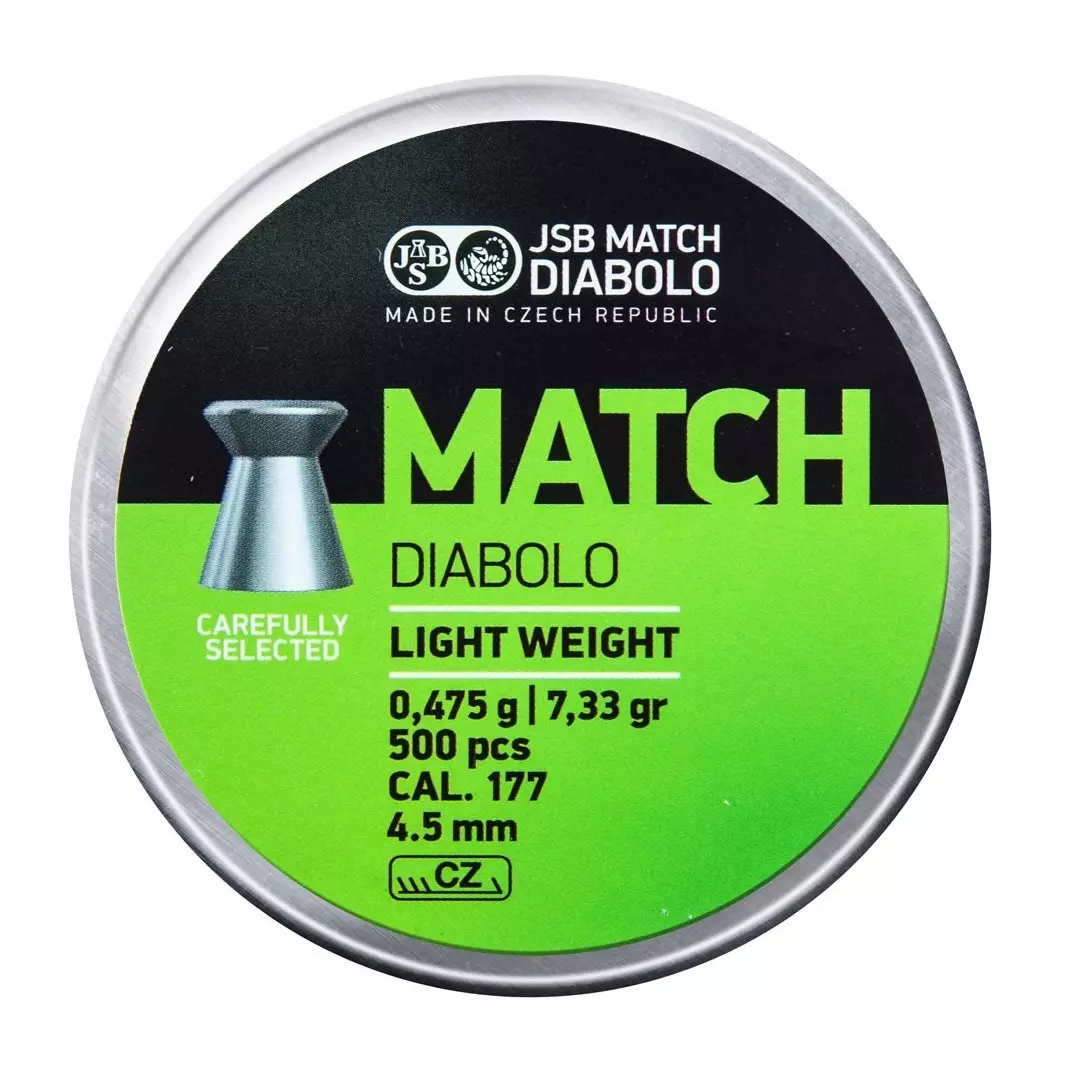 Kevyt tasakärkinen 4,50mm JSB Match Pistol (Green) 0,475g ilma-aseluoti tarkkuusammuntaan 500 luodin rasiassa.