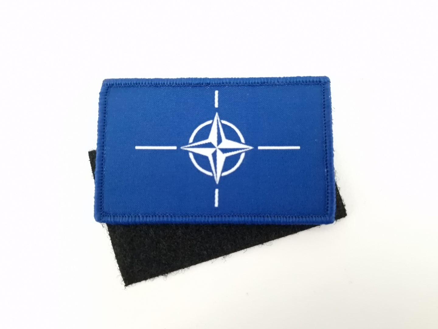 NATO hihalippu, täysväri Sotilasliitto NATO:n tunnuksella varustettu velcro-hihamerkki täysvärisenä.