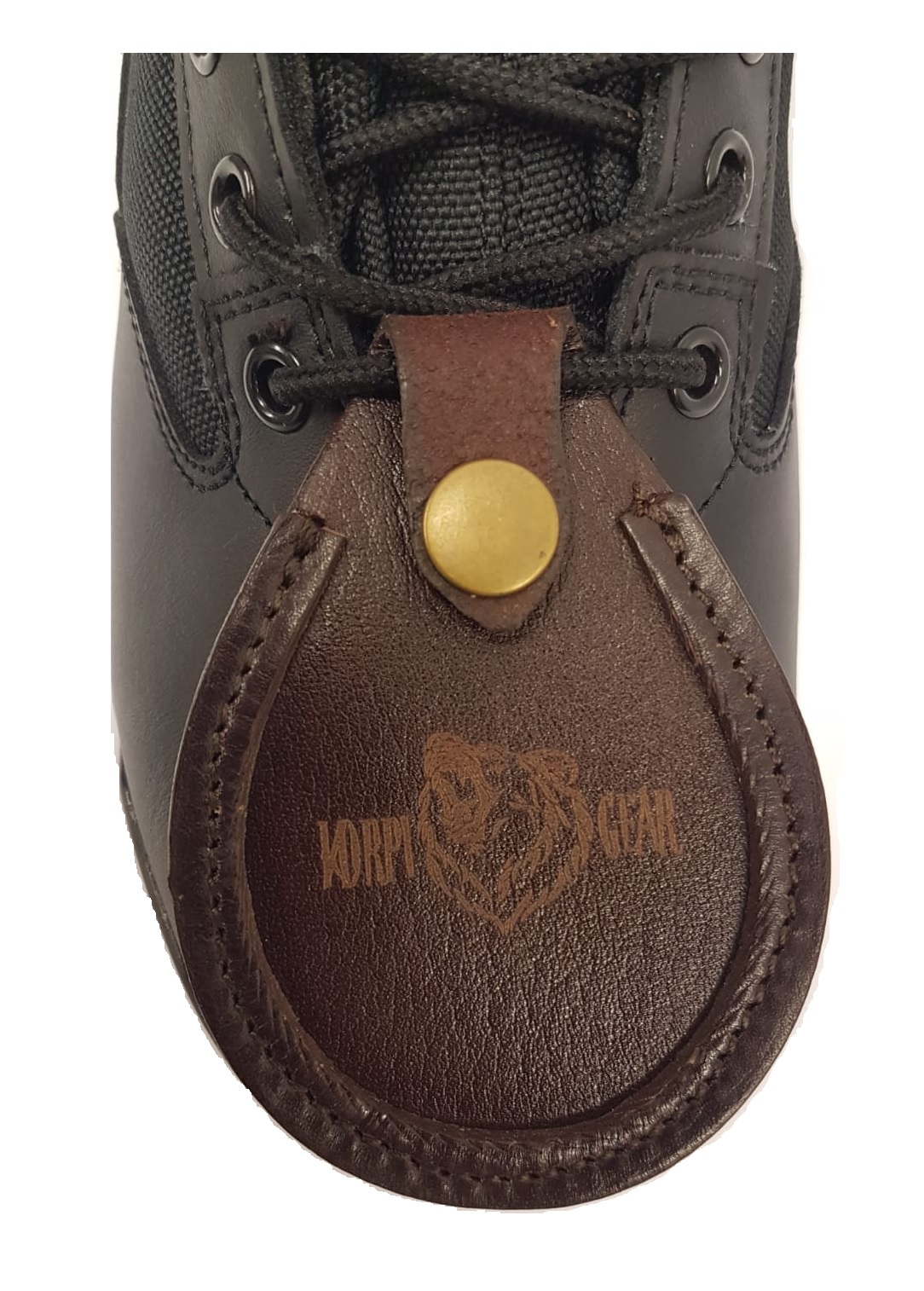 Edullinen KorpiGear piipun lepuuttaja pitävällä nepparinapilla, aitoa nahkaa. Kätevä lisävaruste ampujalle. Osta vaikka molempiin tennareihin!
