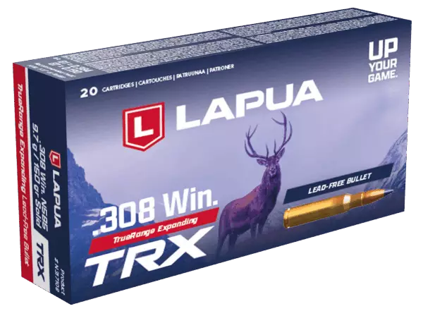 Lapua TRX 9,7g .308Win kiväärin patruuna 20kpl * Rasiassa 20 kpl patruunoita * Kaliiperi: .308 Win * Luoti: 9,7 g (150 gr) TRX (TrueRange Expanding) N585 * Lyijytön kupariluotipatruuna... Lue lisää