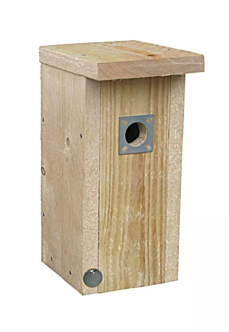 Pesivät linnut: tämä Linnunpönttö on mitoitettu koloissa pesiville hömö-, kuusi-, sini-, ja töyhtötiaiselle.