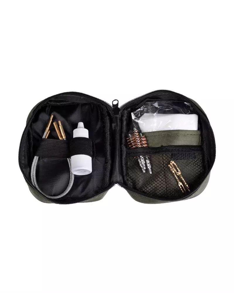 Mil-Tec aseenpuhdistussetti pistoolille + Soveltuu kaliipereille: .22 / .357 / .38 / 9mm / .40 / .45 + Näppärä pieni kotelo + Vaijerimallin "puikko" tukevalla "T" kahvalla + Pehmustetut paikat... Lue lisää