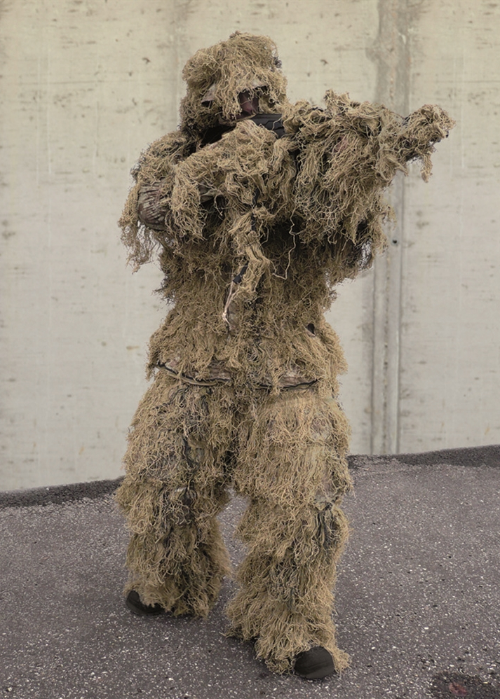 Mil-Tec ghilliepuku on äärimmäisen järkevä hankinta hinta-laatusuhteessa. Setissä on kaikki ghilliehommiin tarvittava, mukaanlukien aseeseen tuleva suojapeite. Se suojaa metsästäjän äärimmäisen tehokkaasti, ja mahdollistaa saaliin lähelle pääsemisen tehokkaammin kuin yksikään kangaspuku. Hengittävä verkkokangas ei hikoile, ja toimii samalla tehokkaana hyönteissuojana. Puku säilyy kevyenä ja kuivuu nopeasti. Maksimaalisen tehokkuuden takaamiseksi suositellaan käytettäväksi hajunpoisto / peittosuihketta ja paikallisen maastoutumispaikan kasvustoa ja maastonkappaleita kuten risuja, lehtiä, heinää tai kasveja.Lisukkeet on helppo sitoa puvun omiin rölleihin, jolloin metsästäjästä sulautuu maastoon täydellisesti miltä tahansa etäisyydeltä tarkasteltuna.
