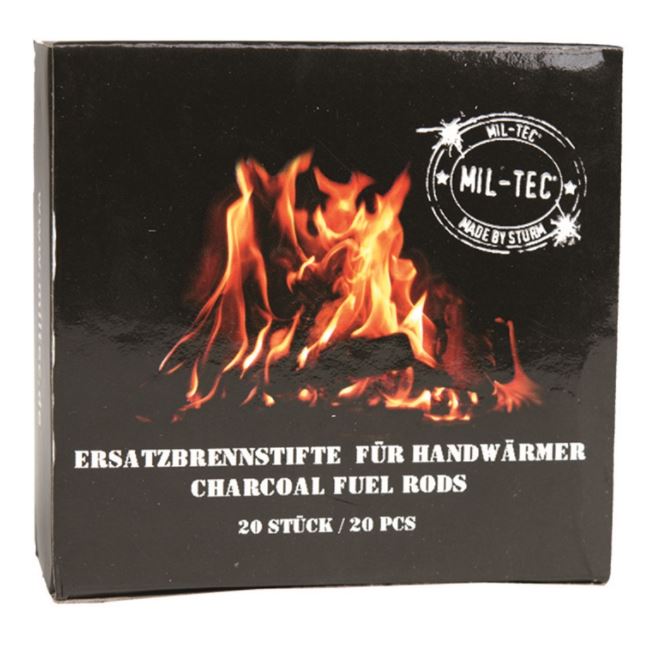 Mil-Tec Hiilitanko kädenlämmittimeen * Rasiassa 20 kpl tankoja * Paino: 4,5g per tanko * Pituus: noin 80 mm