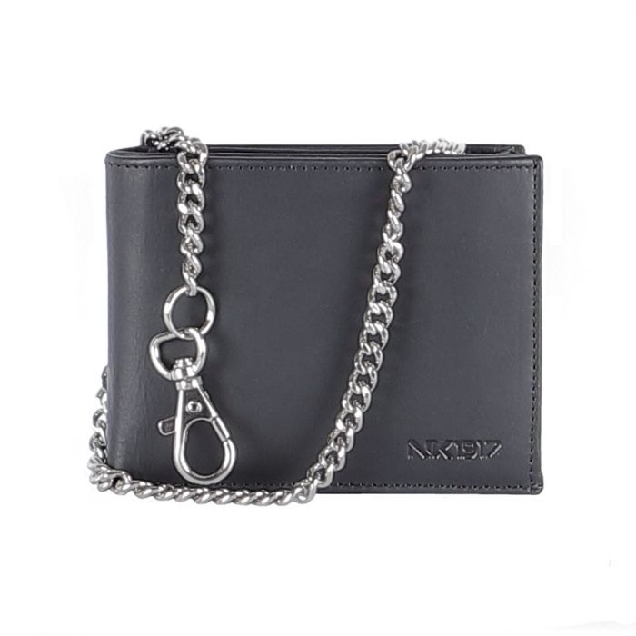 NK1917 Nahkalompakko ketjulla, musta Aidosta nahasta valmistettu lompakko, joka on myös RFID suojattu korttien kopioimista vastaan. * Korttipaikat 8 kortille * Lompakon mitat suljettuna: 12,5 cm x... Lue lisää