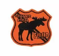 Organic local food -hihamerkki velcrotarralla Kankainen hihamerkki vahvalla velcrotarralla. Koko 6 cm x 5 cm.