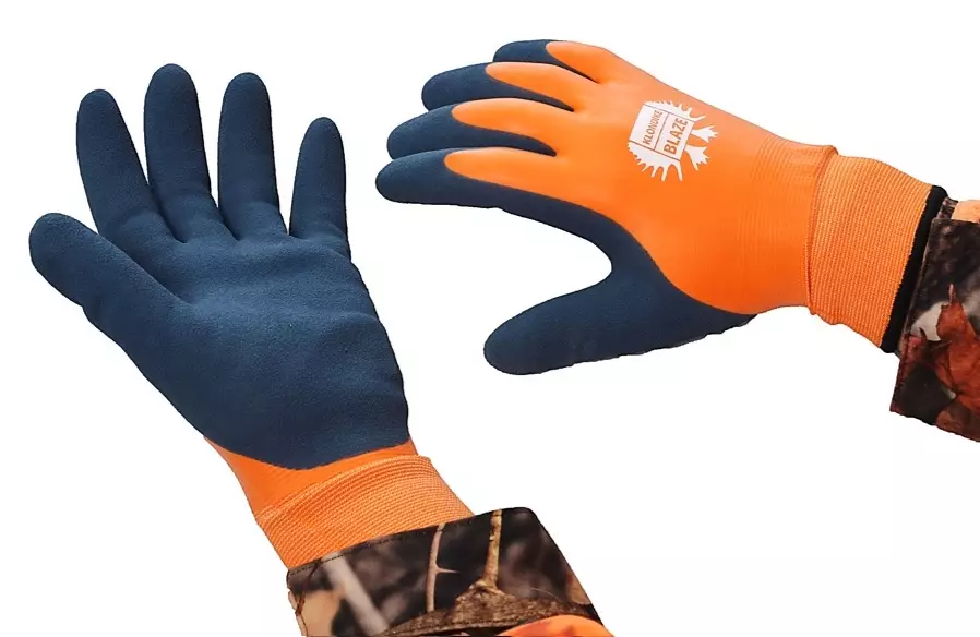 Klondike Blaze Outdoor Extreme hanskoissa on täysi kaksinkertainen lateksipinnoite ja paksu eristetty vuori. Akryylipohjainen sisävuori tarjoaa lämpö- ja kylmäsuojan vaikeissa sääolosuhteissa. Hengittävä sisävuori antaa mukavuutta ja lämpösuojaa kylmää säätä vastaan. Kaksoislateksipinnoite auttaa estämään nesteen tunkeutumisen kosteissa olosuhteissa. Kämmenpuolen "pehmeän karhea" pintapinnoite tarjoaa erinomaisen pidon märissä ja kuivissa ulko-olosuhteissa. Taipuisa rakenne säilyttää sorminäppäryyden kun on aika painaa liipaisinta! Erinomaiset lämpimät ja vettähylkivät hanskat kosteisiin ulkotöihin, metsästykseen, kalastukseen jne..!