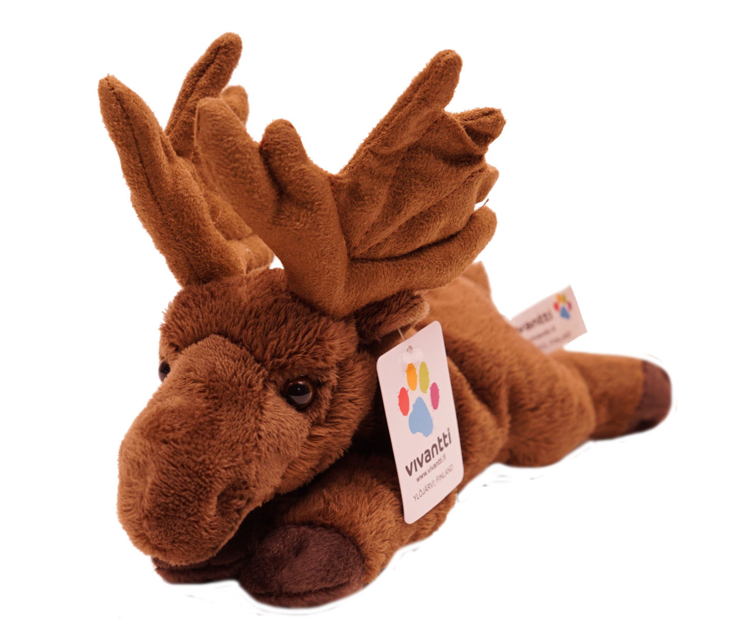 Pehmolelu Hirvi makaava 23cm Pituus noin 23 cm ja korkeus noin 16 cm Puhdistus, käsinpesu max. 40'c