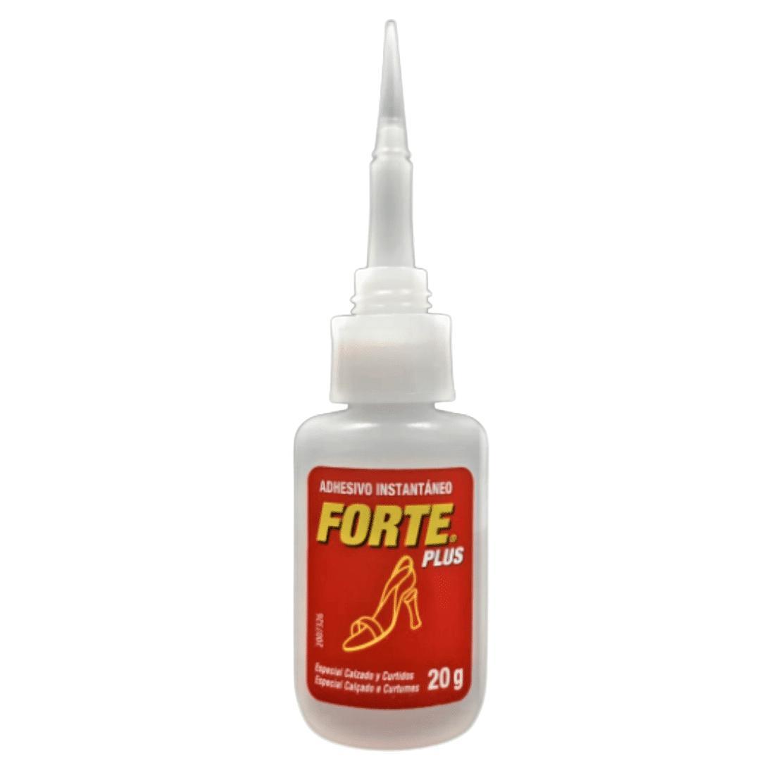 Forte, on mm. suutareiden, nahkureiden ja käsityön ammattilaisten teollisuuskäyttöön suunniteltu pikaliima. Tarttuu sekunneissa, ja liitos on kova, väritön ja kestää rasitusta erinomaisesti. Se on alunperin suunniteltu kestämään mm. jalkineissa, mutta esimerkiksi holosilmät, perhojen päät, ja sidokset ovat likipitäen ikuisia Fortella liimattaessa. Nyt myös pienempi 20g pakkauskoko. Pullon annostelunokka pysyy hyvin puhtaana kun muistaa joka käytön yhteydessä pyyhkiä sen puhtaaksi, ja puristella annostelunokasta liimat paperiin kunnes nokan läpi kulkee ilma niin että se "hengittää" vapaasti.