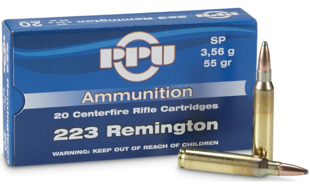 PPU SP .223Rem 3,56g 20kpl * Rasiassa 20 kpl patruunoita * Kaliiperi: .223 Remington * Luoti: 3,56g (55gr) Soft Point * Lähtönopeus V0: 990 m/s