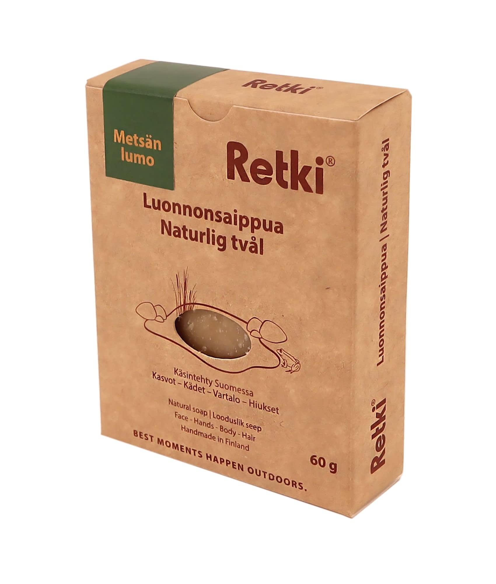 Retki Luonnonsaippua 60g Metsän lumo Käsintehty suomalainen luonnonsaippua. Retki-saippuat ovat runsasvaahtoisia, säilöntäaineettomia ja ne sisältää vain luonnosta saatavia raaka-aineita ja... Lue lisää