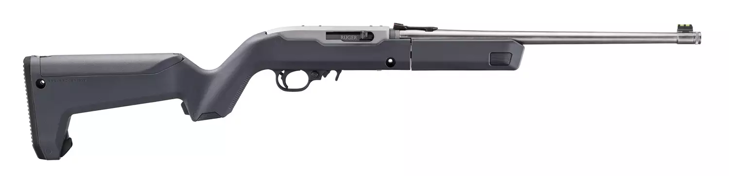 Tässä Ruger 10/22 aseessa on Magpul X-22 Backpacker -tukki, joka on suunniteltu liikkuvaan käyttöön. Tukissa on integroitu säilytystila kahvassa sekä saranoitu lokero, johon mahtuu jopa kolme varalipasta. Innovatiivinen lukitusmekanismi mahdollistaa piipun kiinnittämisen runkoon kuljetuksen ajaksi, mikä tekee aseesta erityisen kompaktin ja helposti mukana kuljetettavan.
