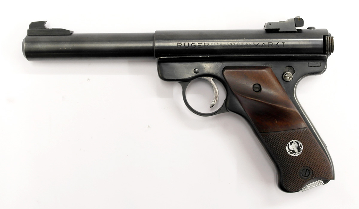 Siistikuntoinen Ruger MK I pienoispistooli yhdellä 10 patruunan lippaalla.