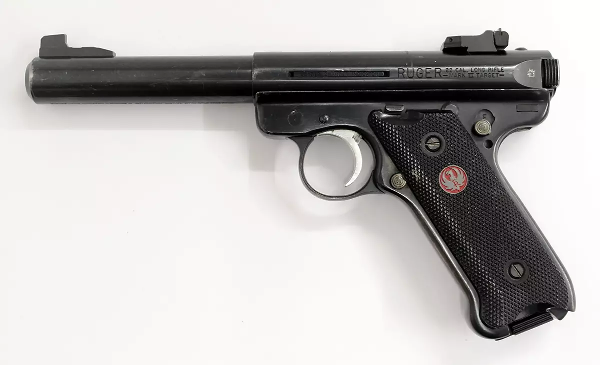 Ruger Mark III Target pienoispistooli yhdellä uudella 10 patruunan Mec-Gar lippaalla.