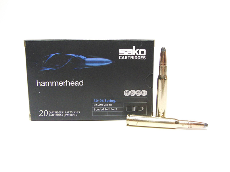 Sako Hammerhead 30-06 Sprg on erityisesti hirvelle ja muulle suurriistalle suunniteltu lyijykärkinen luoti. Riistaosumassa luoti muotoutuu sienimäiseksi ja säilyttää suuren osan massastaan.