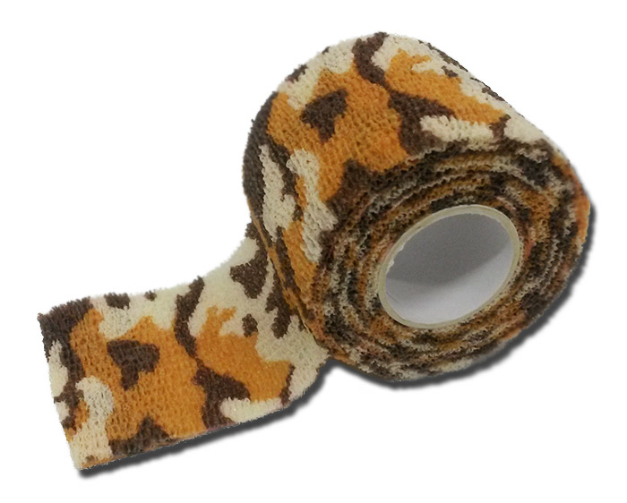 Sideharsomainen naamiontiteippi desert camo -värityksellä. Helppo kiinnittää ja irroittaa. Voidaan käyttää tarvittaessa tukisiteen tavoin. Soveltuu hyvin aseiden, kiikareiden, kameroiden, retkivarusteiden ym. naamiointiin metsästäjille, retkeilijöille sekä luontokuvaajille