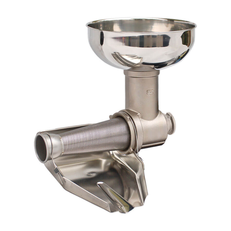 Sosepuristin kotikäyttöön, puutarha- ja luonnonmarjoille, omenoille, tomaatille ja kivettömille hedelmille. Erottelee kuoret, siemenet, roskat ja suojuslehdet ym. Sose on valmis säilöttäväksi tai välituote mehunpuristukseen ja marmeladin valmistukseen.