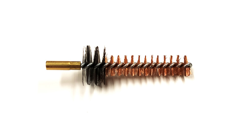 Messinkinen puhdistusharja aseen piipulle, patruunapesäharja 1/8 naaraskierteellä.