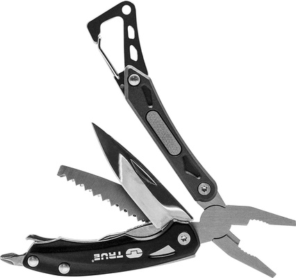 True Utility Seven on kätevä ja pienikokoinen monitoimityökalu seitsemällä toiminnolla. Terät ruostumatonta terästä ja kahva mustaksi anodisoitua alumiinia.