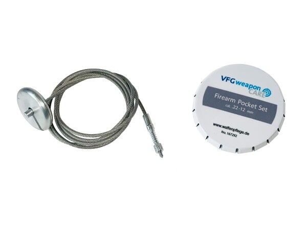 VFG Firearm Pocket set cal .22-12 VFG muovipinnoitettu puhdistusvaijeri kiinteällä tulppa-adapterilla. Mukana irroitettava käsiosa. Kätevä peltirasia. Soveltuu kaliipereille .22-12GA.... Lue lisää