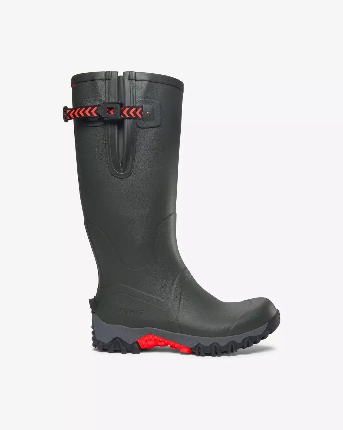 Saappaat on valmistettu matalatiheyksisestä kumiseoksesta, mikä keventää saappaiden kokonaispainoa laadusta tinkimättä. Jalkaterän kolmikerroksinen kumipäällys lisää vakautta ja kestävyyttä. Viking High Trophyssä on korkea varsi ja varren yläosassa säädettävä remmi, joka taistelee luonnonvoimia vastaan ja pitää sinut kuivana. Näissä metsästäjille suunnitelluissa saappaissa on Vikingin ainutlaatuinen kestävä UGC®-ulkopohja, jonka syvät monisuuntaiset kuviot peittävät ulkopohjan kokonaan ja antavat hyvän pidon. Varren sisäosassa on kestävä ja nopeasti kuivuva polyesterivuori. Muotoiltu EVA-pohjallinen tekee saappaista mukavat koko päiväksi ja ne voi poistaa kuivattamisen nopeuttamiseksi. Saappaissa on vakioistuvuus varressa ja nilkan kohdalla sekä tilavampi jalkaterän alue.