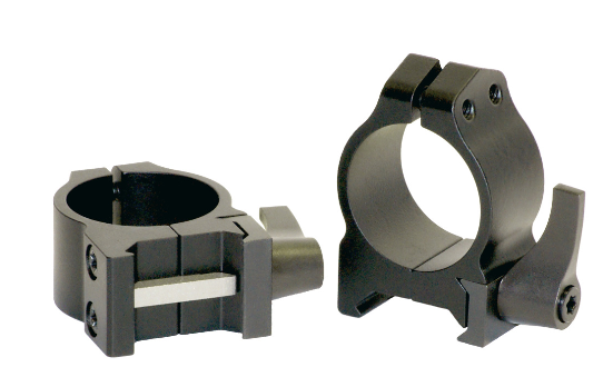 Teräksiset Warne Maxima -pikajalat Weaver-kiskoon. Jalat ovat 1" (25,4mm)runkoputkelle.