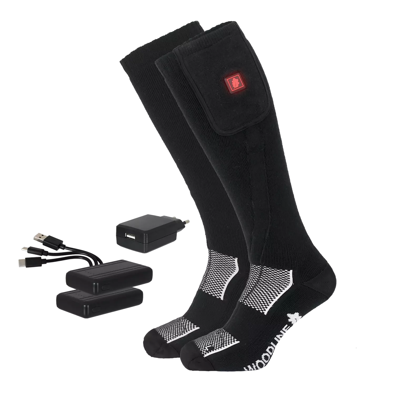 Sukkaan sisäänrakennettu lämmitysjärjestelmä saa virtansa 3,85V 3500mAh virtapankista, ja siinä on kolme eri lämmitystilaa. Sukan ulkopinnan yläosassa on USB-C-liitännällä varustettu tasku, johon kytket virtapankin ja säilytät sen käytön aikana.