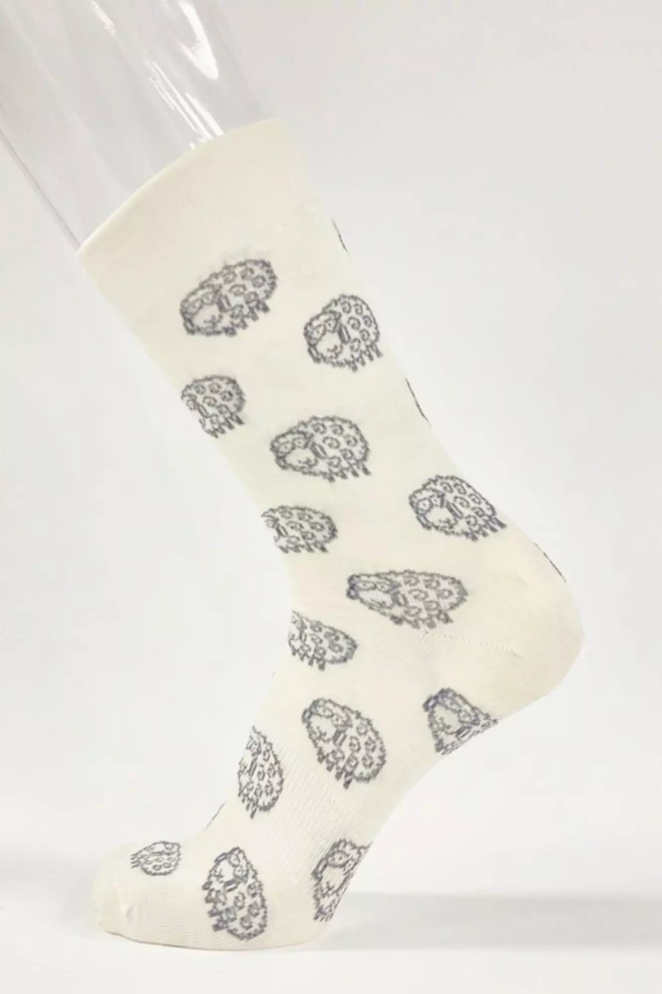 WOOLWEAR Merinovilla sukat no. 96 valkoinen lammaskuvio